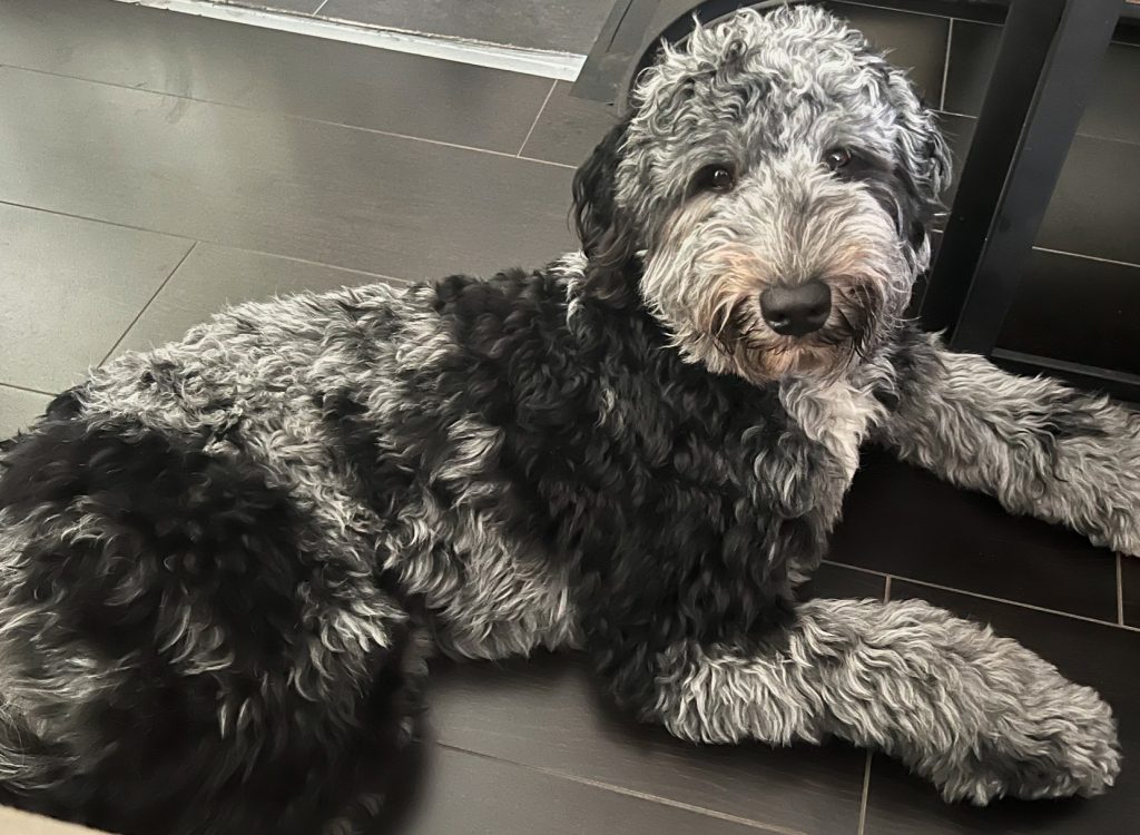 Merle is geen patroon dat van nature voorkomt bij Australian Labradoodles, Poedels of Berner Sennenhonden. Toch kan het in zowel Australian Bernedoodles als Bernedoodles voorkomen dankzij een kruising uit eerdere, waarschijnlijk met een Merle-dragend ras zoals bijvoorbeeld de Australische herder. In die verre voorgeschiedenis is het Merle-gen, een genetische variatie die zorgt voor een uniek gevlekt patroon en soms subtiele kleurveranderingen in de vacht, bewaard gebleven. Naarmate de generaties groeiden, werden de honden genetisch weer volledig consistent met de Poedel, terwijl het bijzondere Merle-patroon achterbleef.